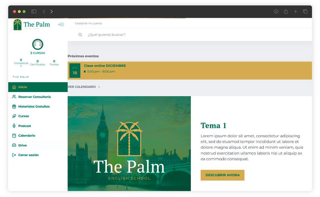 Para academias online: Monetiza tu contenido educativo ofreciendo acceso a través de suscripciones mensuales o membresías exclusivas. Proporciona un espacio único donde los estudiantes puedan acceder a cursos privados, descargar materiales y disfrutar de un entorno diseñado para su aprendizaje.