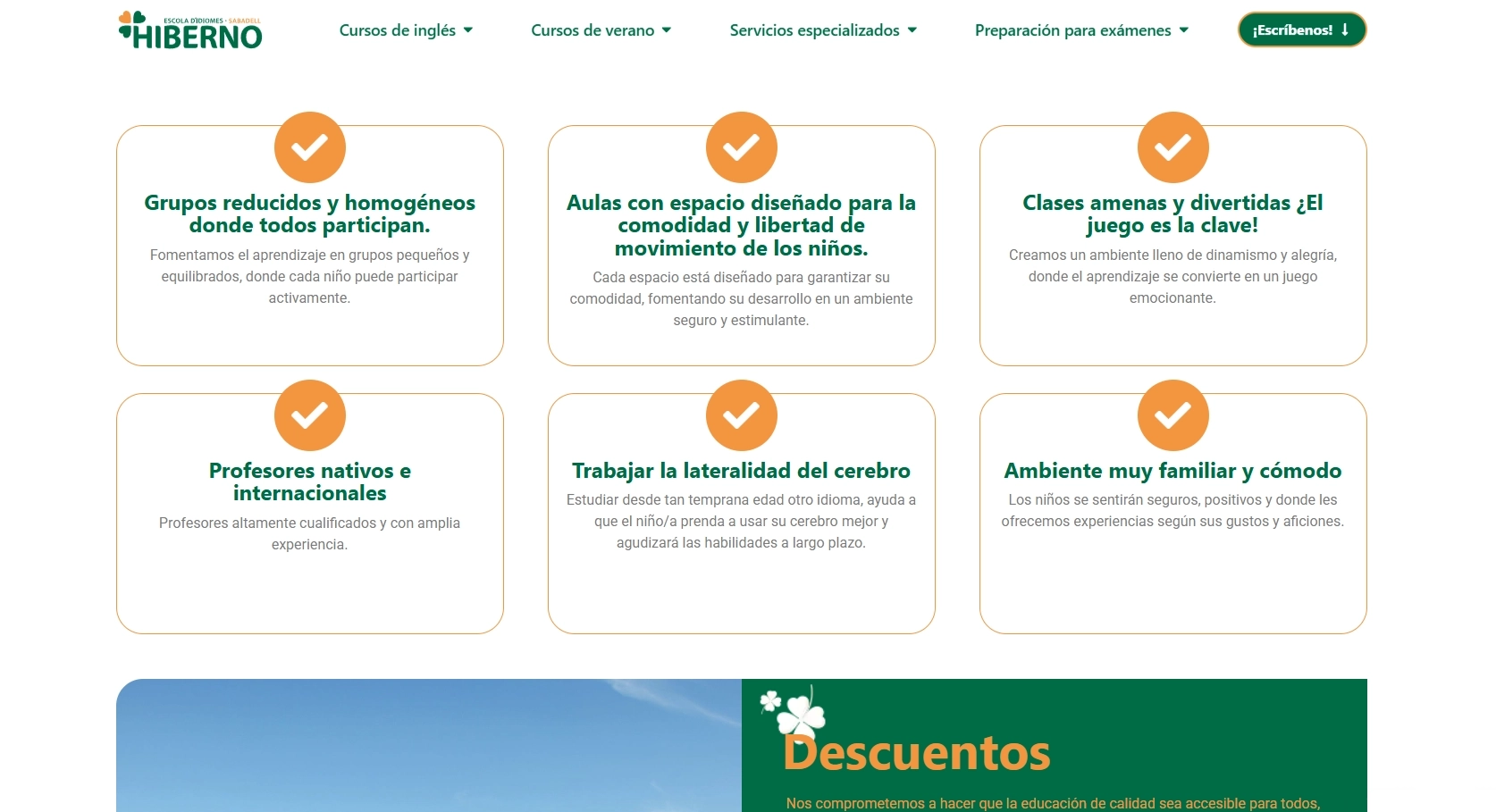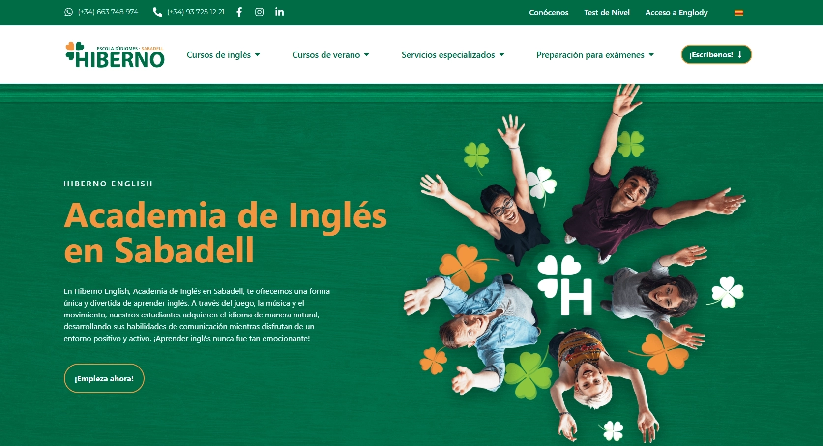 Hiberno English es una academia de inglés con esencia irlandesa que necesitaba una web moderna, fácil de navegar, clara y atractiva tanto para familias como para adultos.