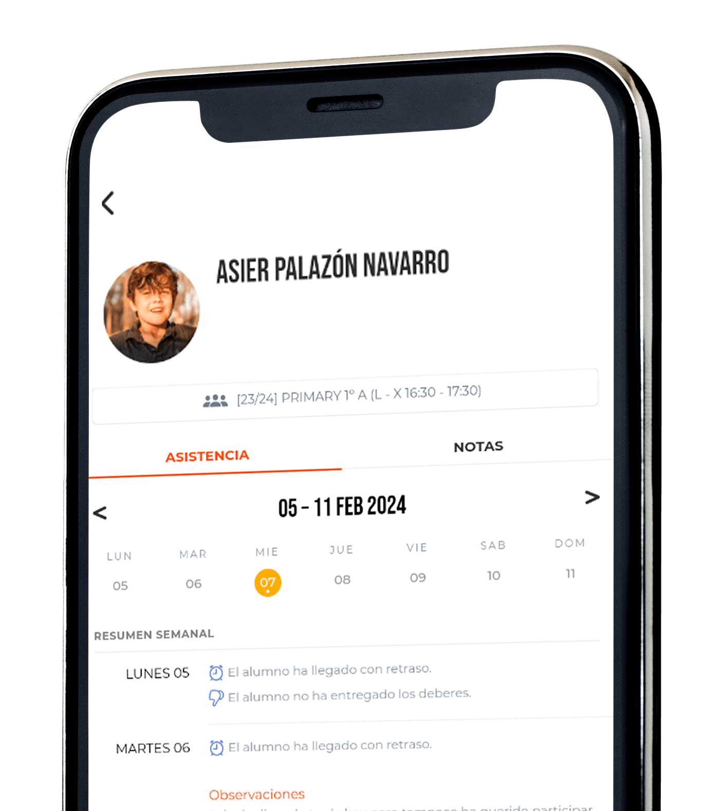 Además, el profesorado de tu centro podrá utilizarla para realizar el control de asistencia, dejar comentarios y observaciones sobre un estudiante así como responder a los mensajes recibidos... ¡La herramienta perfecta que te hará dar el salto a otro nivel!
