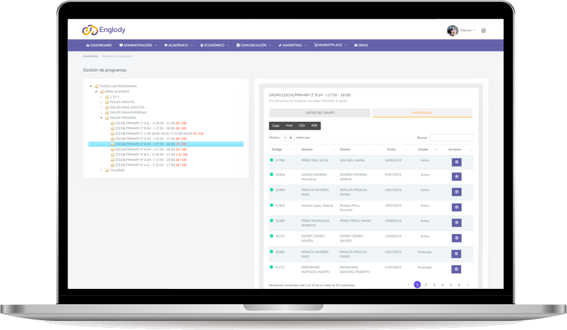 Registra y administra toda la oferta formativa de tu centro de idiomas