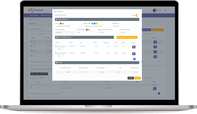Da de alta y gestiona las matrículas de tus estudiantes en tus cursos de inglés