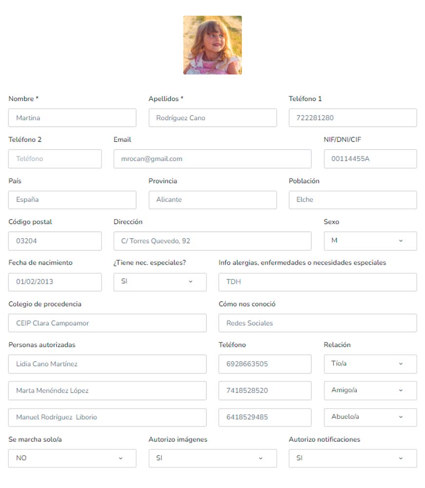 Registra todas las matriculas de tu centro, pudiendo editar y visualizar todos los datos personales del alumnado y clientes del centro.